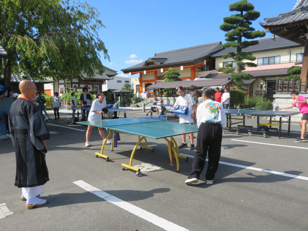 また、毎年9月の第1日曜日には「ピンポン寺卓球大会」を開催し、子どもからご年配の方まで幅広い年代が楽しく汗を流しています。勝ち負けにこだわらず、和やかで温かい雰囲気のなかで交流を深めるこの大会は、地域の恒例行事として定着しています。